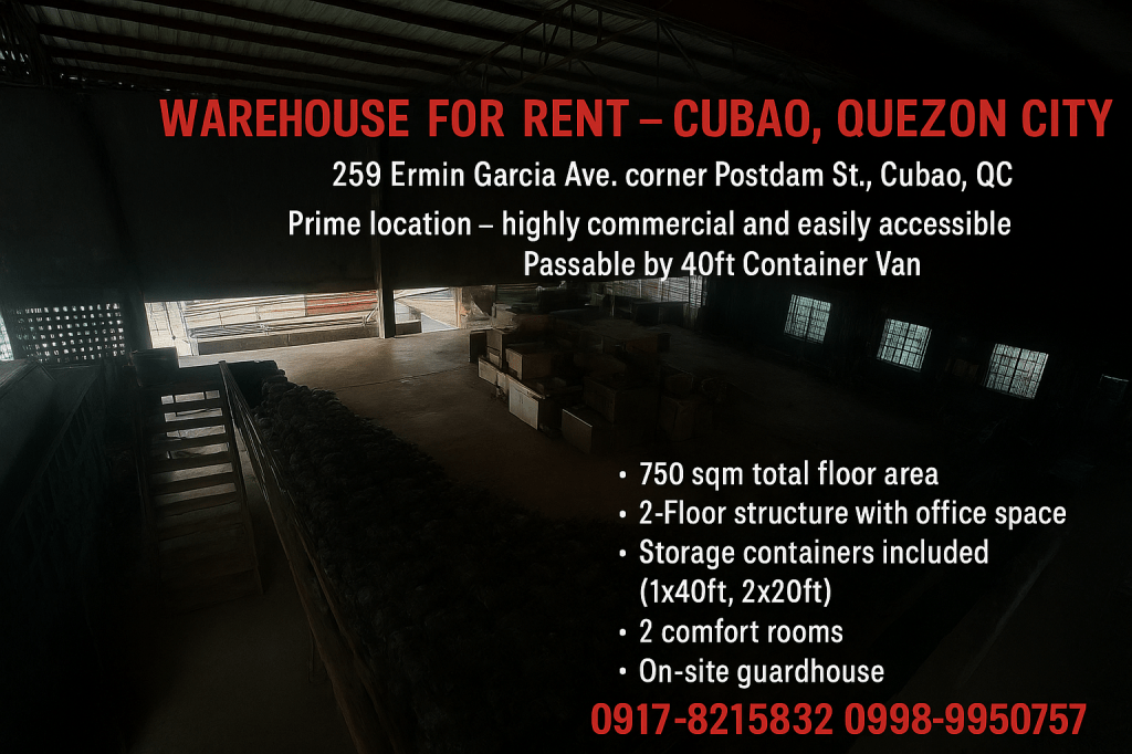 🏭 Warehouse for Lease/Rent – Cubao, Quezon City